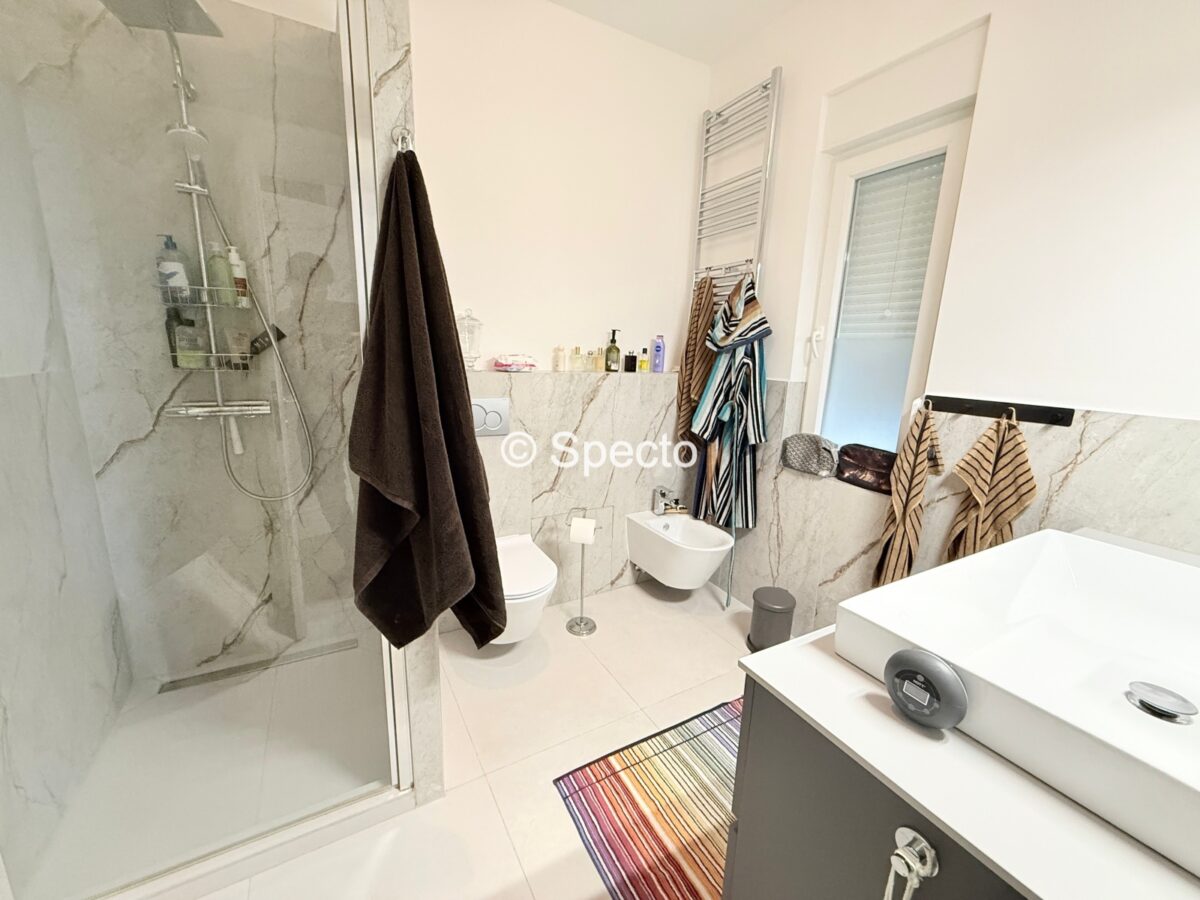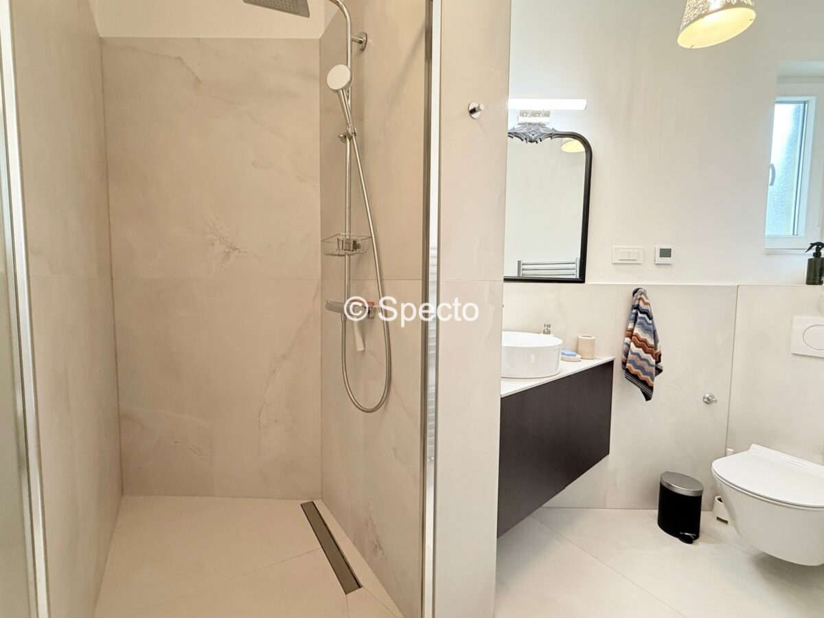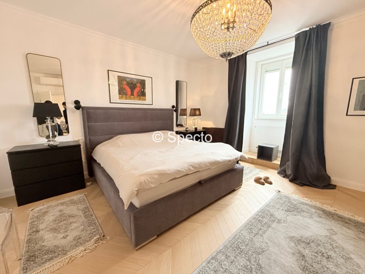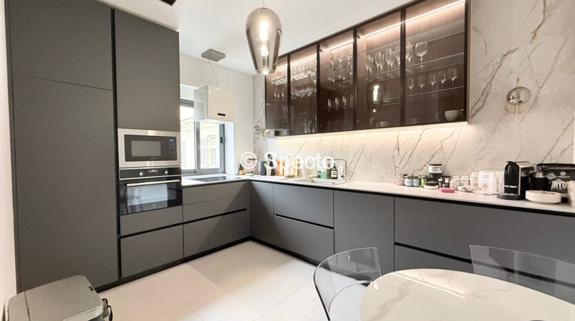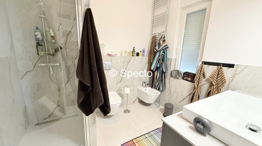 2023. godine je stan potpuno renoviran, promijenjene su sve instalacije, stolarija, chevron parket, prvoklasna keramika, ugradbeni ormari po mjeri…